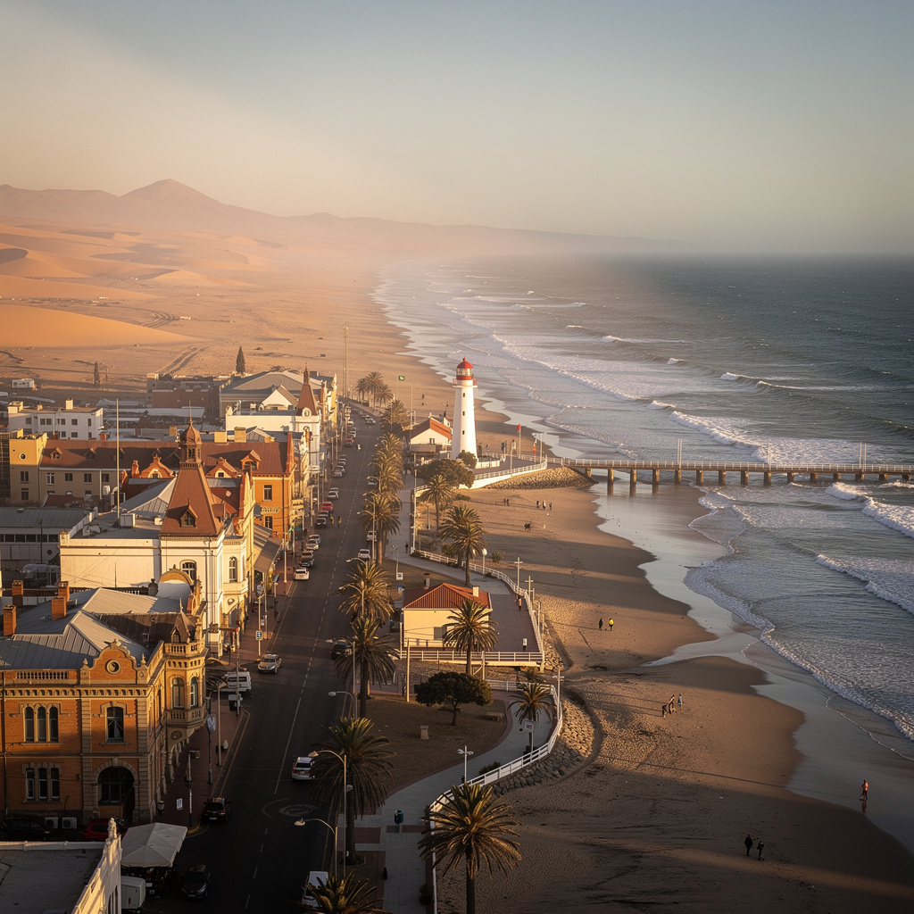 Walk the Mole and seafront—fishermen, joggers, and gulls share the same wind. The Woermannhaus tower and Hohenzollern Building read like postcards someone actually mailed. Afternoon: Swakopmund Museum if you want context before dunes, or Kristall Galerie if minerals beat timelines. Dinner is German beer hall or seafood—reservation and walk back in fading light belong in one thread—desert towns get dark in ways cities forget.